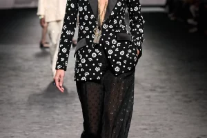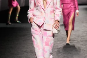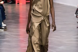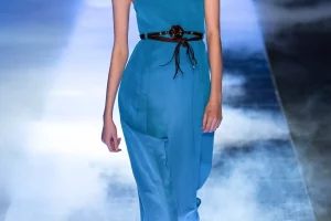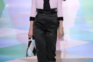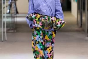 Alberta Ferretti propone una tuta in chiffon nei colori della primavera, con l’accortezza nella cintura a contrasto, così da spezzare il capo. Nello stesso tessuto, la combo si può ottenere con una blusa arancione abbinata a un pantalone fucsia, sempre con cintura. Sotto un sandalo alto, così da slanciare la silhouette. AZ Factory ha, invece, pensato a un contrasto ancora più netto, con pantaloni stampato a fiori e una camicia a righe sottili, con tanto di ruches double. Elegantissima la proposta di Jean Paul Gaultier in seta, una tuta in golden dust con tanto di zeppa. Da abbinare a un girocollo di perle o a una catena dorata (senza charms…).