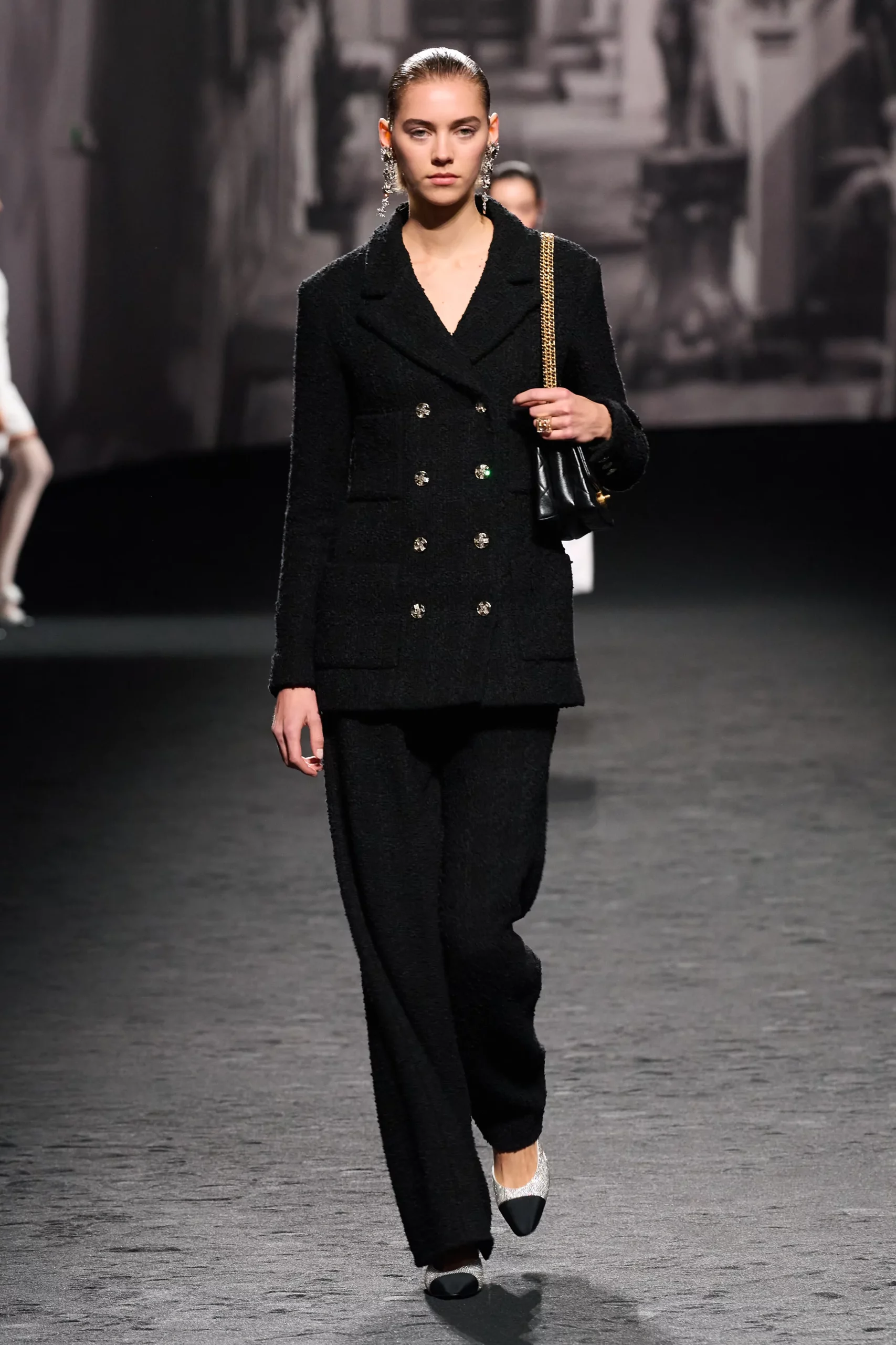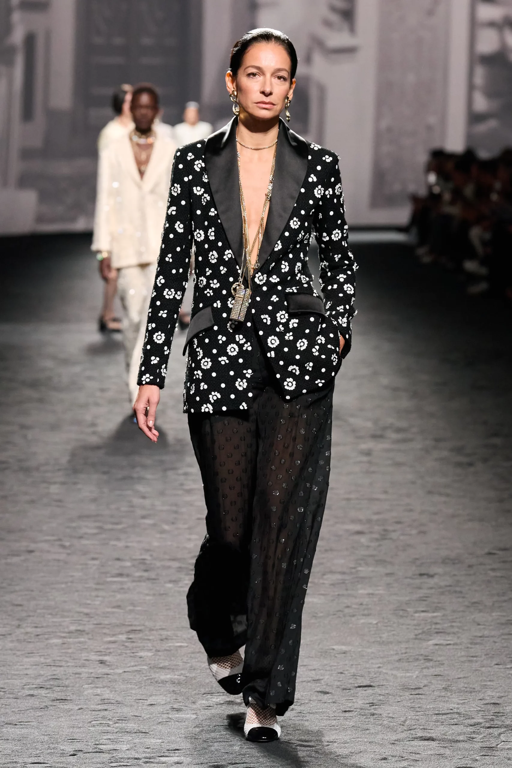 Se avete poco tempo per studiare l’outfit matrimonio, l’ideale è puntare su un tocco maschile. Un tailleur over con stampa a fiori, o un doppiopetto nero con bottoni dorati, come propone Chanel, oppure il classico suit nero smoking da abbinare a una camicia con cravatta ma solo per un matrimonio fissato dopo il tramonto.