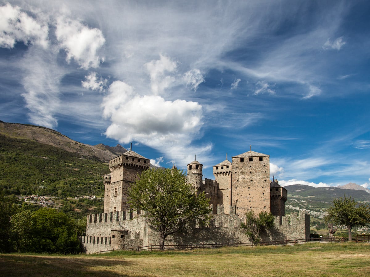 Il Castello di Fénis o Château de Fénis ha origini lontane: ma quando è stato costruito il Castello di Fénis? Dobbiamo andare indietro nel tempo e, più precisamente, tra il XII e il XIII secolo; la storia di questo castello è connessa alla famiglia Challant. Si crede, però, che prima questa costruzione fosse la sede di una villa romana, anche se in realtà non vi sono delle testimonianze come per il castello di Issogne, presente sempre in Valle d’Aosta. La prima volta che venne menzionato il castello è nel 1242, quando viene indicato come residenza del visconte di Aosta Gotofredo di Challant e i suoi fratelli.
