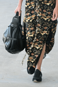 Il look da “sciura”, signora over 60 è confermato dalle borse dal gusto rétro, per modelli a mano e a bauletto. Anche le borse a secchiello vivono una seconda giovinezza, ma lo fanno con forme rinnovate. Tra le forme geometriche a brillare è quella a trapezio. E, ancora, sling-back dal tacco basso, cardigan e gonna a matita. Tra gli altri accessori tornano prorompenti i guanti, stavolta lunghissimi, avvolgenti, senza mezze misure, che coprono solo le dita come Gucci, oppure abbondantemente sopra il gomito come da Alberta Ferretti.