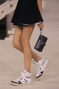 Un altro must have di questa primavera, oltre agli intramontabili sabot, sono le scarpe da tennis: comode, leggere, sempre più versatili. Da abbinare alla tuta-non tuta da jogging, a un jeans, anche a una gonna a pieghe. Sbizzarritevi con borse e accessori nei colori sgargianti come il rosso e il verde acido, giocando su geometrie old style e contrasti.