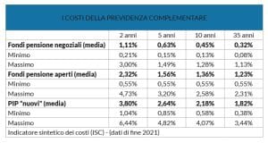 Il vantaggio di un investimento in pensione integrativa va confrontato sempre e comunque (e questo vale per qualsiasi strumento di risparmio) con la portata dei costi di gestione che potrebbero, se superano una certa soglia, annullare i vantaggi fiscali.