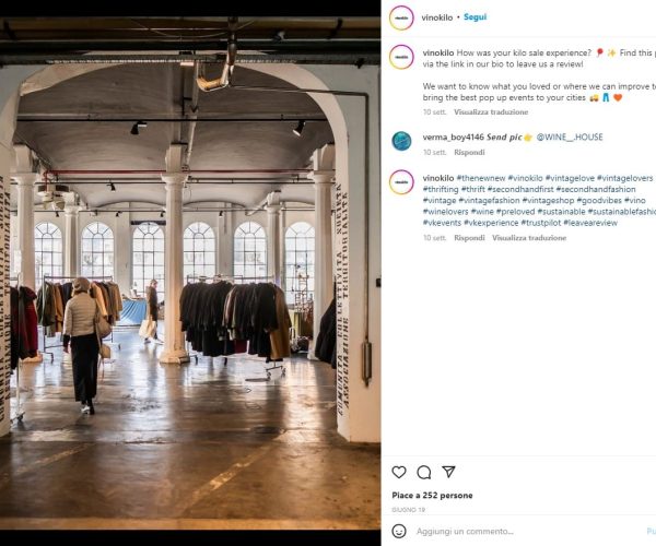 Vinokilo nasce in Germania, nel 2016, dall’idea dell’imprenditore Robin Balser. E’ diventato il più grande mercato di abiti vintage (venduti al chilo) d’Europa. Si può solo comprare o partecipare attivamente portando vestiti dismessi. L’incentivo è un buono del 30% off sugli acquisti. Il sito è anche online oppure si può vivere la fisicità degli eventi che si svolgono in moltissime città europee, anche italiane (Roma, Bari, Bologna e altre). Capi e accessori sono esposti con precisione e organizzati per tipologie, tessuti e cromie per facilitare l’acquisto. I ragazzi ne vanno pazzi e può essere una buona occasione per accompagnarli e fare shopping insieme.