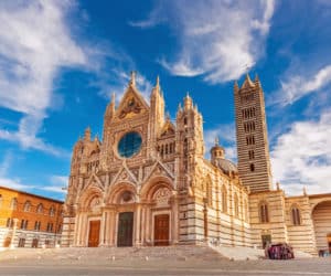 Iniziamo la giornata con la visita di Siena, la città del Palio, che si tiene ogni anno il 2 luglio e il 16 agosto: visitiamo con la guida Piazza del Campo, dalla particolare forma a conchiglia, gli esterni del Palazzo Comunale e della Torre del Mangia, simbolo del potere e dell’eleganza della città, e il meraviglioso Duomo. Dopo il pranzo libero ci spostiamo a Monteriggioni, incantevole borgo medievale posto sulla sommità di una collina e racchiuso da una cinta muraria perfettamente conservata, dove passeggiamo con l’accompagnatore. La cena è libera, in alternativa abbiamo la possibilità di aderire a una cena facoltativa in contrada, con guida serale di Siena.