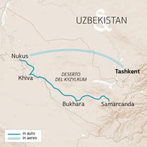Un viaggio lungo la mitica Via della Seta, nel cuore dell’Asia centrale, tra le antiche città di Khiva, Bukhara e Samarcanda, strette fra il Deserto del Kyzylkum a nord e il Karakum a sud. Per secoli le lunghe carovane hanno sostato in queste tre oasi, all’ombra delle grandi moschee dalle cupole blu con i loro svettanti minareti e una di queste, la celebre Samarcanda, fu scelta da Tamerlano, come splendida capitale per il suo impero. L’erede di Gengis Khan, nonché ultimo conquistatore delle steppe, la volle così bella che fece giungere i migliori artigiani dell’India per decorarla. Preambolo prezioso sarà la toccata a Nukus, per scoprire opere d’arte incredibili, sottratte a un triste destino e testimoni di una silenziosa disubbidienza. Al termine del tour si potrà estendere il viaggio per una visita facoltativa della Valle di Fergana.