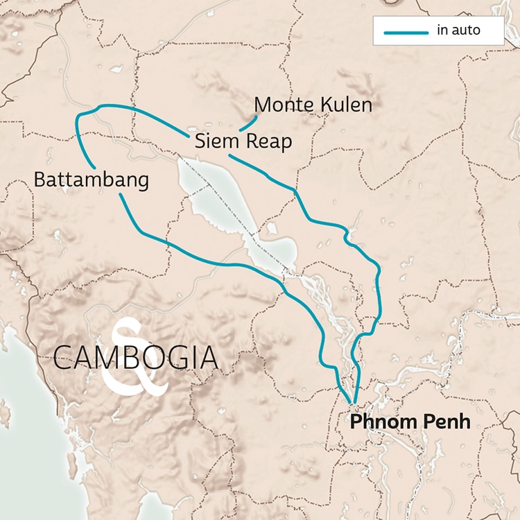 Un viaggio nel cuore dell’antico regno Khmer, tra i racconti di un popolo che ne tramanda la sua gloriosa storia e ne custodisce i tesori. La capitale Phnom Penh, metropoli legata ai valori del passato ma volta verso il futuro; i piccoli villaggi rurali, con le vie animate dalle voci dei bambini e la vita scandita dai ritmi della natura; l’onnipresente acqua, nella forma dei bacini, spesso punteggiati di ninfee, o in quella dei fiumi, sulle cui sponde si possono trovare abitazioni, scuole e negozi galleggianti. A conclusione di questa meraviglia, il leggendario Complesso di Angkor, tra alberi centenari che abbracciano i templi, rappresentazione fisica dello spirito khmer.