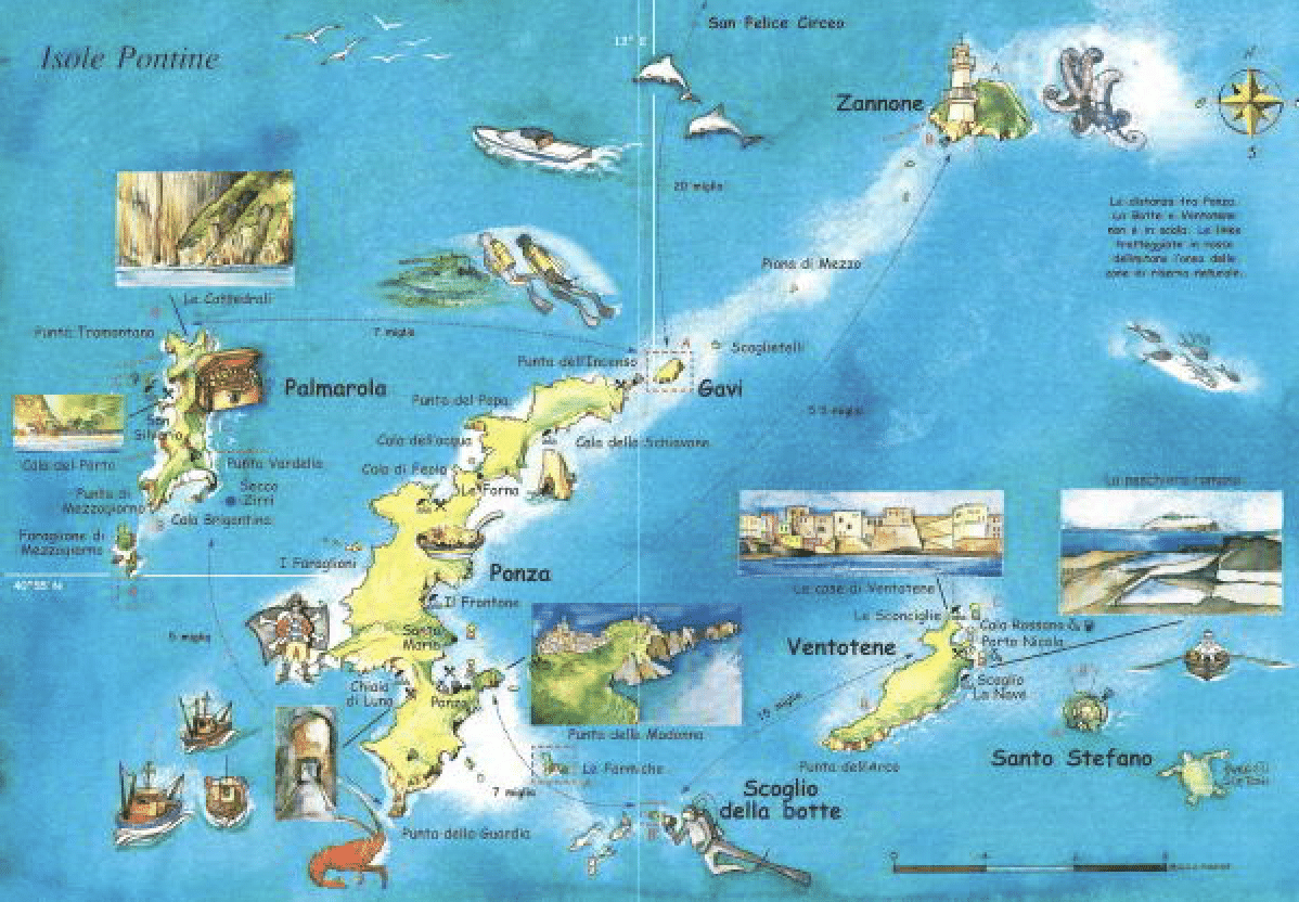 Al largo del Golfo di Gaeta, le sei grandi isole dell’arcipelago delle Pontine sono incorniciate da coste scoscese e splendide baie, raggiungibili solo dal mare, e dal colore pastello dei paesini sospesi nel tempo.