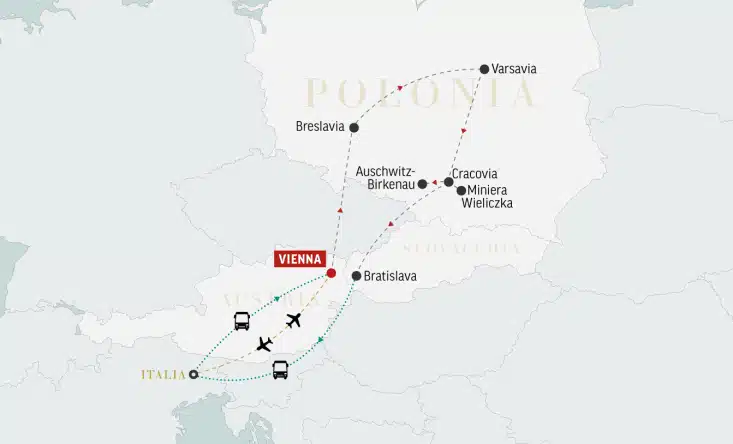 • Visite guidate di Vienna, Breslavia, Varsavia, Cracovia, Miniere di sale e Auschwitz